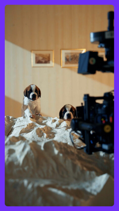 Vor der Eröffnung wird nichts gesagt. Es wird gezeigt. Hände, die bürsten. Ein Föhn. Eine Fliege, die gebunden wird. Der Bernhardiner bereitet sich vor — in der Stille eines Stars vor seiner Premiere. Kurze Capsules, zugeschnitten für Instagram und TikTok, die mit Neugier spielen, ohne je zu früh zu viel zu verraten.