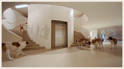 Das neue Barryland wurde von Grund auf, schon in seiner architektonischen Konzeption, als ein Ort für Hunde gedacht. Kein Museum, in dem Bernhardiner Attraktionen sind. Ein Raum, der um sie herum entworfen wurde, damit sie sich wohlfühlen, und in dem die Menschen sie in ihrer Welt besuchen kommen. Diese Idee wird zum Film: Die Hunde erkunden ihr Zuhause, bevor alle anderen ankommen.