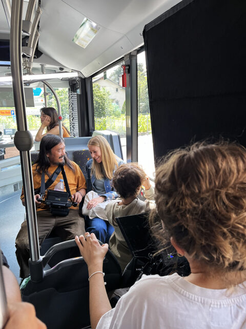 L’idée: trois usagers, trois transports, trois moments vrais. Un enfant le nez collé à la vitre du bus MBC. Une senior absorbée par son livre dans le train BAM entre Bière et Apples. Un jeune couple qui glisse dans la nuit lausannoise sur le M1. Trois façons d’aimer voyager. Trois façons de dire J’M.