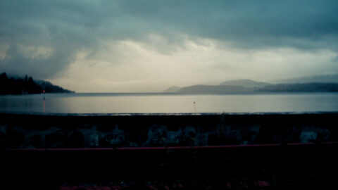 Roger filmé de loin dans le jardin, petit dans l’immensité du cadre, le lac et les Alpes derrière lui. En anamorphique, la profondeur de champ devient vertigineuse. La scène a la qualité d’un plan de Kubrick : l’homme est seul, le paysage est immense, la machine s’arrête à ses pieds à l’heure dite.
